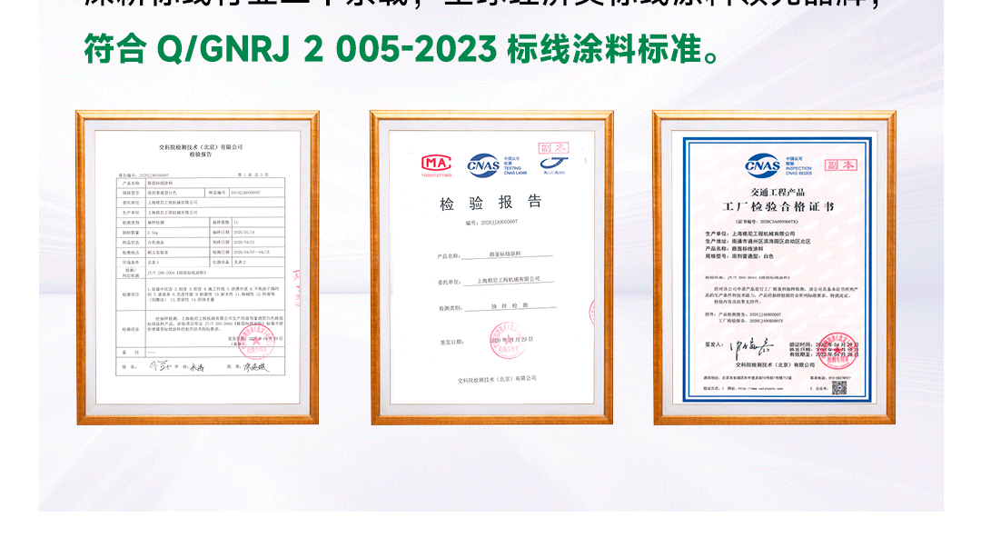 ?專家測評:標線特點:優質苯丙基料、金紅石鈦白/有機鉻黃顏料、多重優質助劑、復合工藝、標準化檢測;色澤好、覆蓋強、宜施工、不起泡,耐磨耐候、品質一致性好;執行標準:中國交通部Q/GNRJ 2 005-2023路面標線涂料標準;