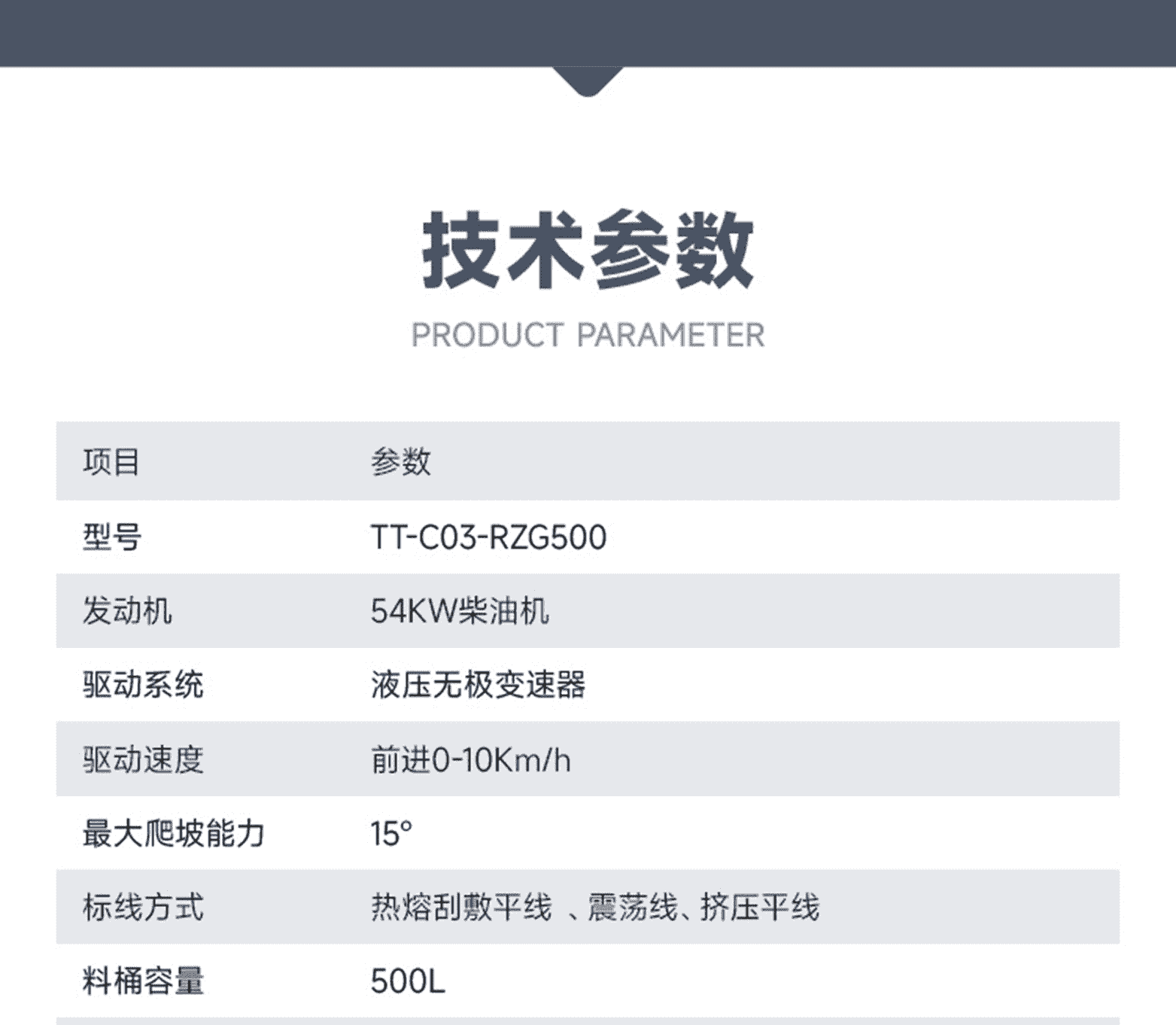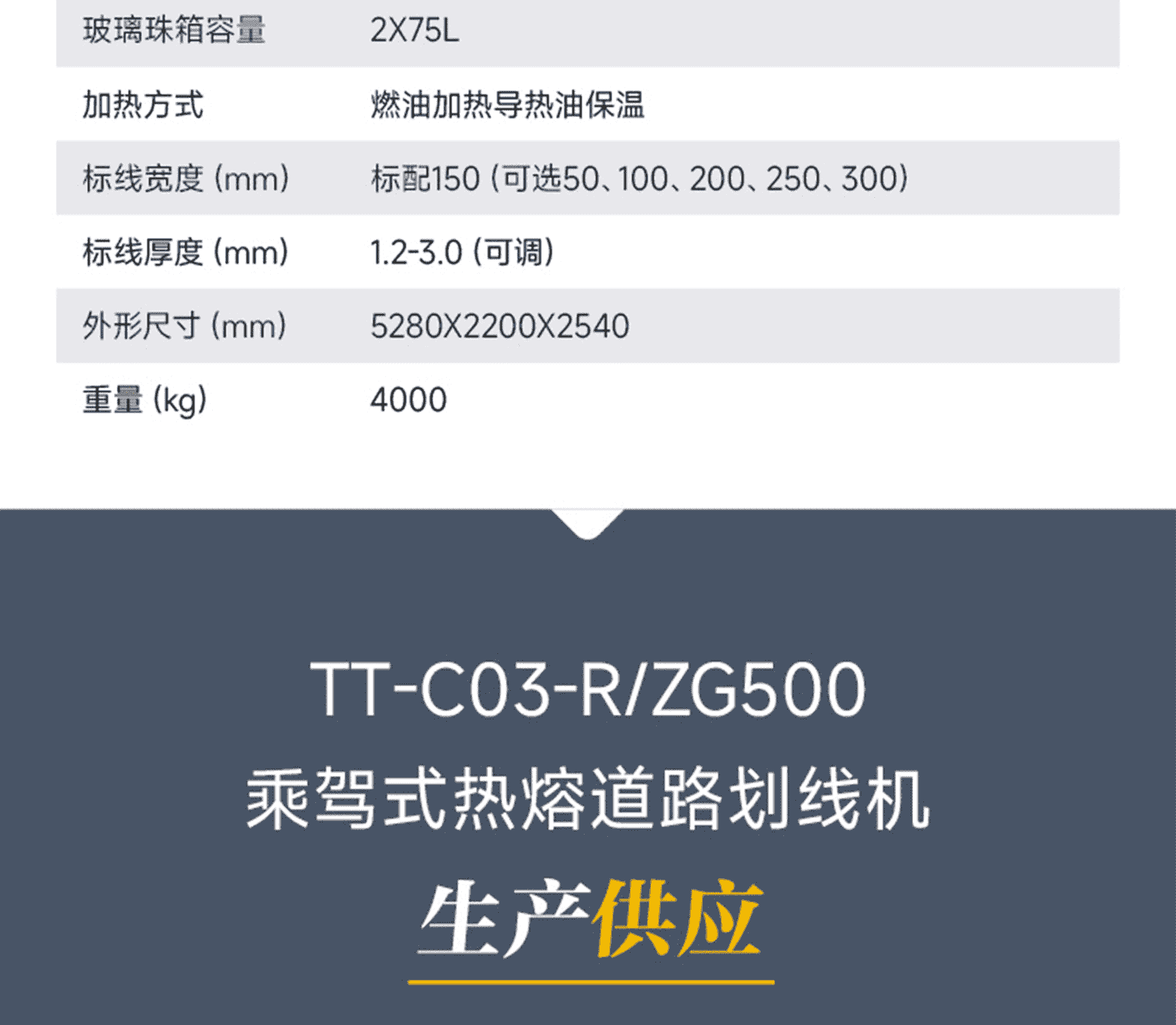 核心品質:驅動系統穩定易操作、進口液壓件、易操作式人機對話、熱熔釜導熱油式穩定保溫;主要特點:刮敷施劃熱熔平線及震蕩線、擠壓施劃平線、劃線端更換方便、易維護、劃線效率高;