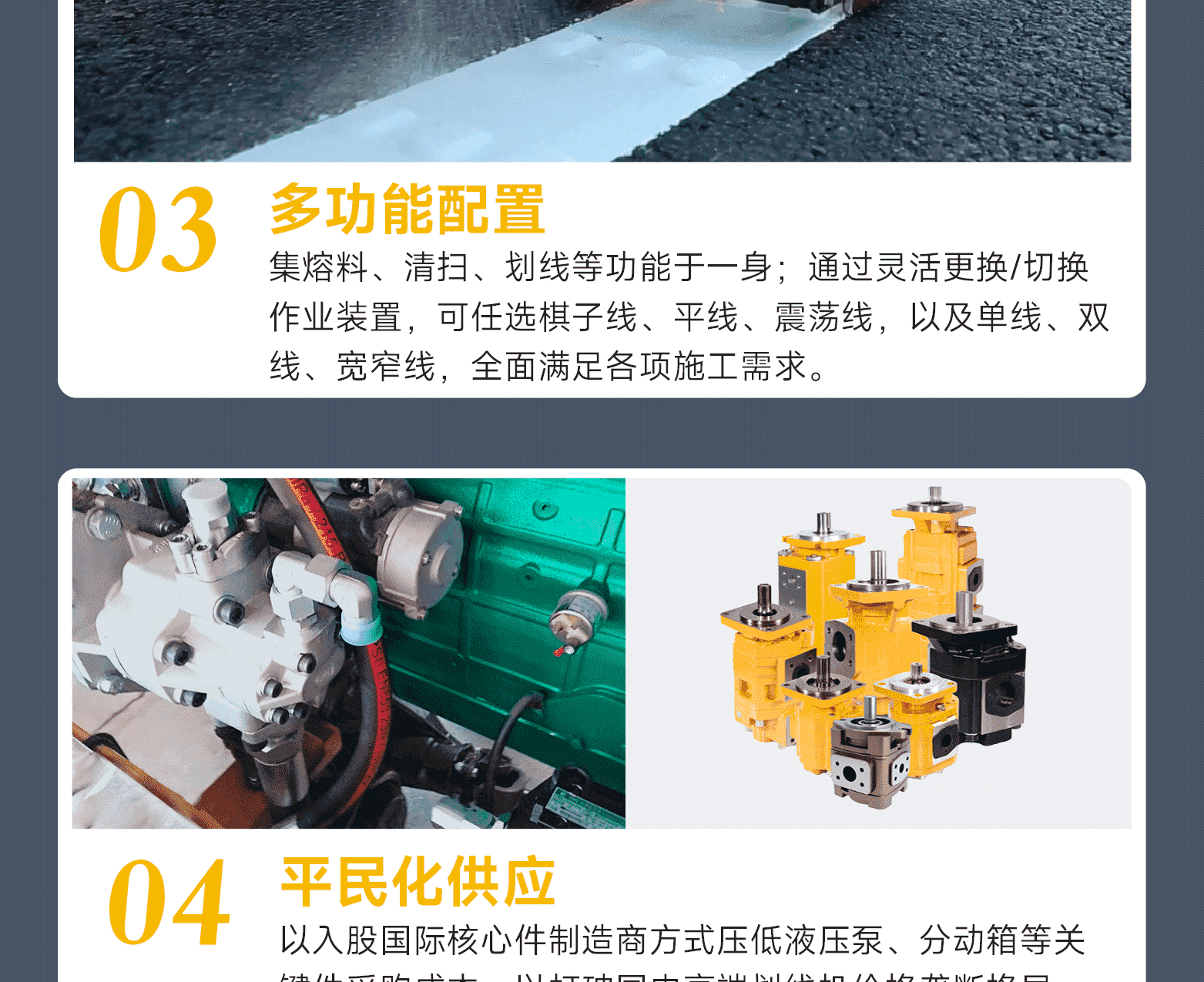 ?專家測(cè)評(píng):專利涂料泵(實(shí)用新型 2021229326550) 、高效加熱熔料系統(tǒng)、涂料加熱自動(dòng)溫控系統(tǒng)、可視化智能操作平臺(tái)、進(jìn)口液壓元件。主要特點(diǎn):集成化程度高;可雙側(cè)劃線;性能卓越,經(jīng)濟(jì)高效,操控精準(zhǔn)化