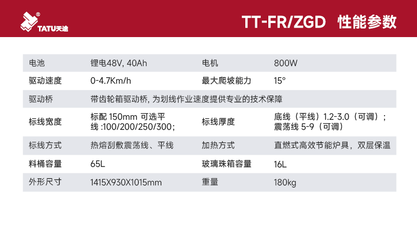 ?專家測(cè)評(píng):主要特點(diǎn):耐高溫抗變形料斗,刮敷施工,線型整齊美觀,易維護(hù)。大功率電機(jī),坡道劃線線型穩(wěn)定整齊。大功率鋰電池,環(huán)保,續(xù)航能力強(qiáng)。智能自動(dòng)控制器,可適用多種線型